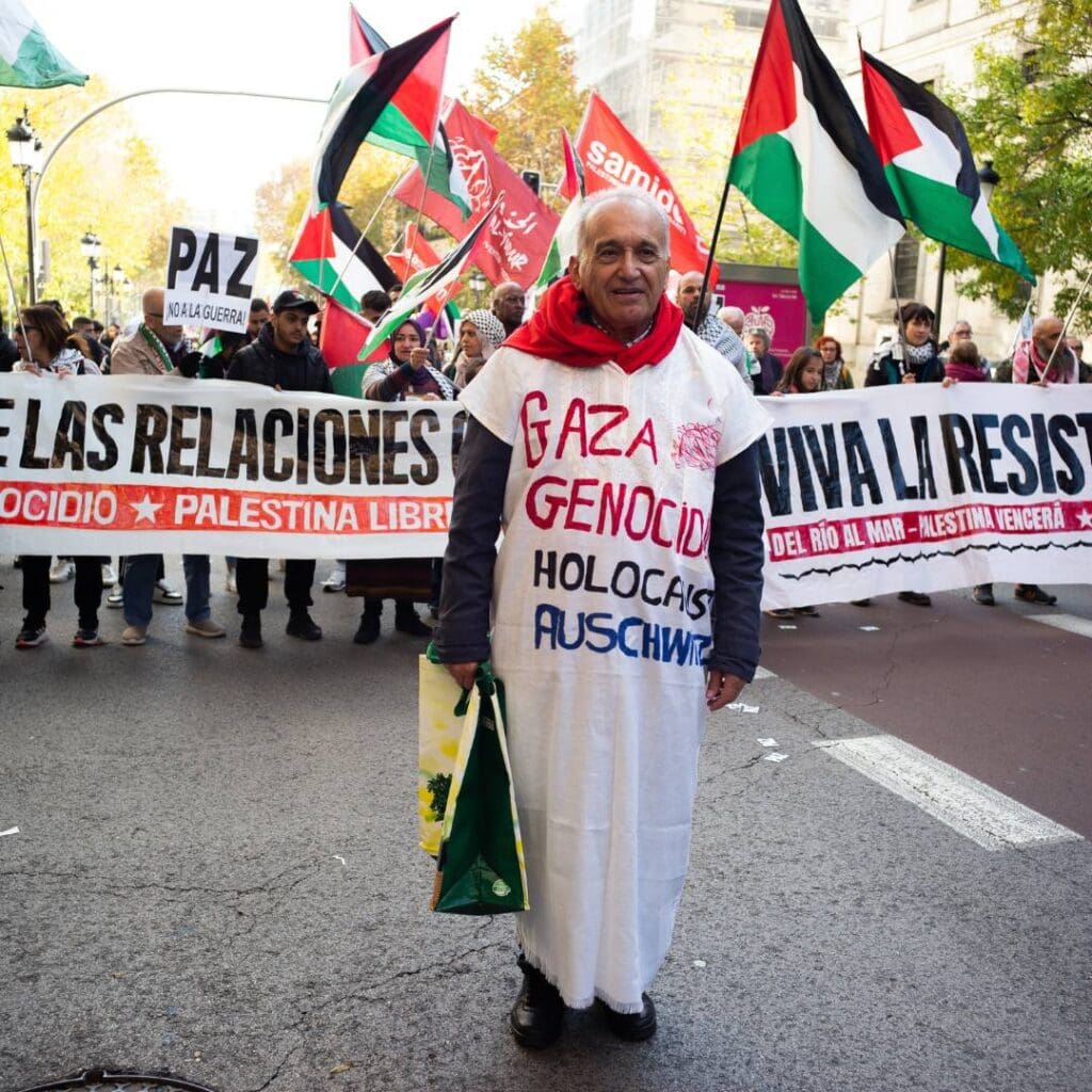Et aujourd’hui, ceux qui incarnent cette promesse trahie, ‘‘plus jamais ça’’, ce ne sont pas les gouvernements qui se réclament des victimes d’hier. Ce sont les peuples enfermés, bombardés, affamés, qui continuent à se battre pour leur dignité, leur terre, leur vie. (…) Les Juifs d’hier, ce sont les Palestiniens d’aujourd’hui.