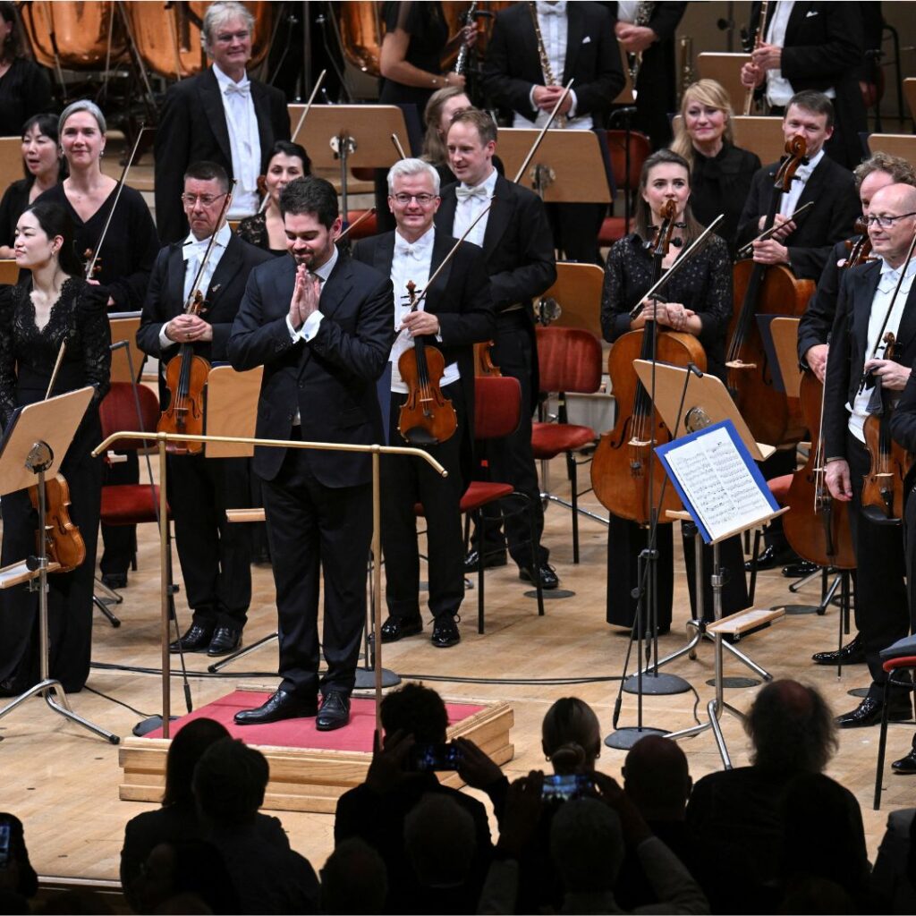 Le chef d'orchestre israélien Lahav Shani ovationné par le public après une représentation avec l'Orchestre philharmonique de Munich en tant qu'invités au Konzerthaus Berlin dans le cadre du Musikfest Berlin, après leur annulation au Festival des Flandres à Gand. Le 15 septembre 2025. ©Reuters/Annegret Hilse.