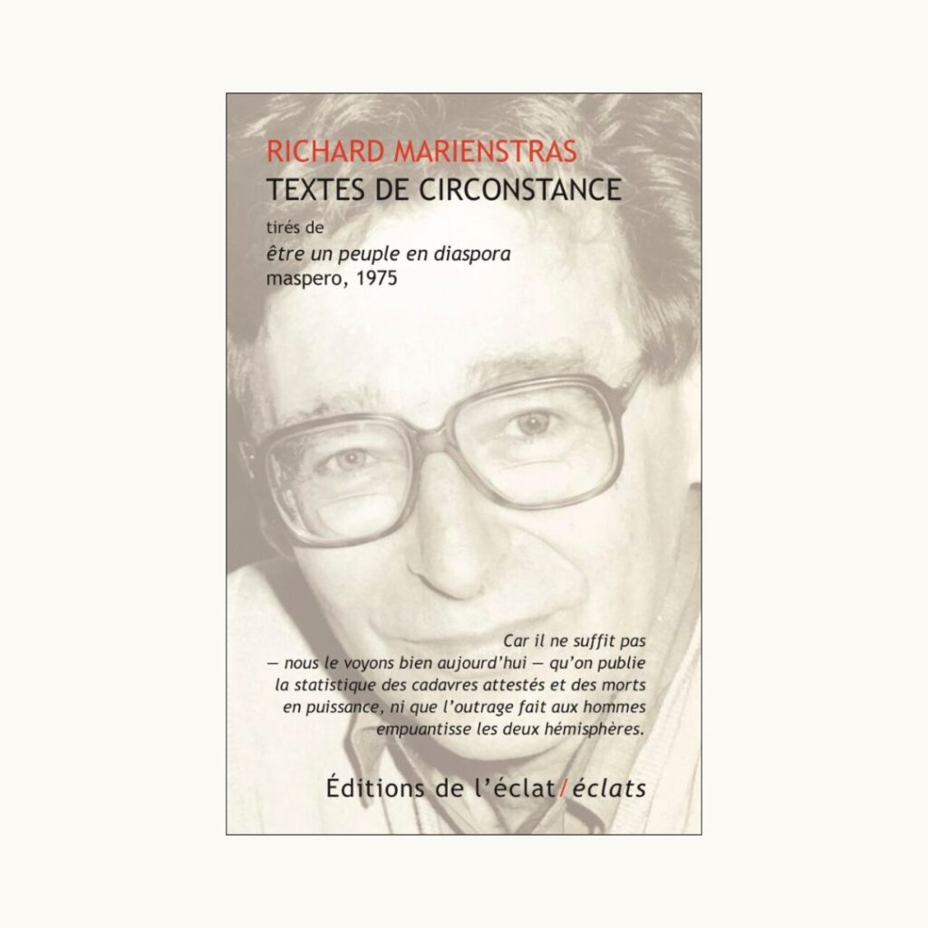 Le génocide même des Juifs d’Europe n’est-il pas une tragique mise en cause de ce néo-bundisme résolument diasporique et minoritaire, indifférent, sinon hostile, au sionisme, sans pour autant récuser l’existence de l’État d’Israël ? Il est bon de relire Marienstras pour nous replonger dans un moment de notre histoire.